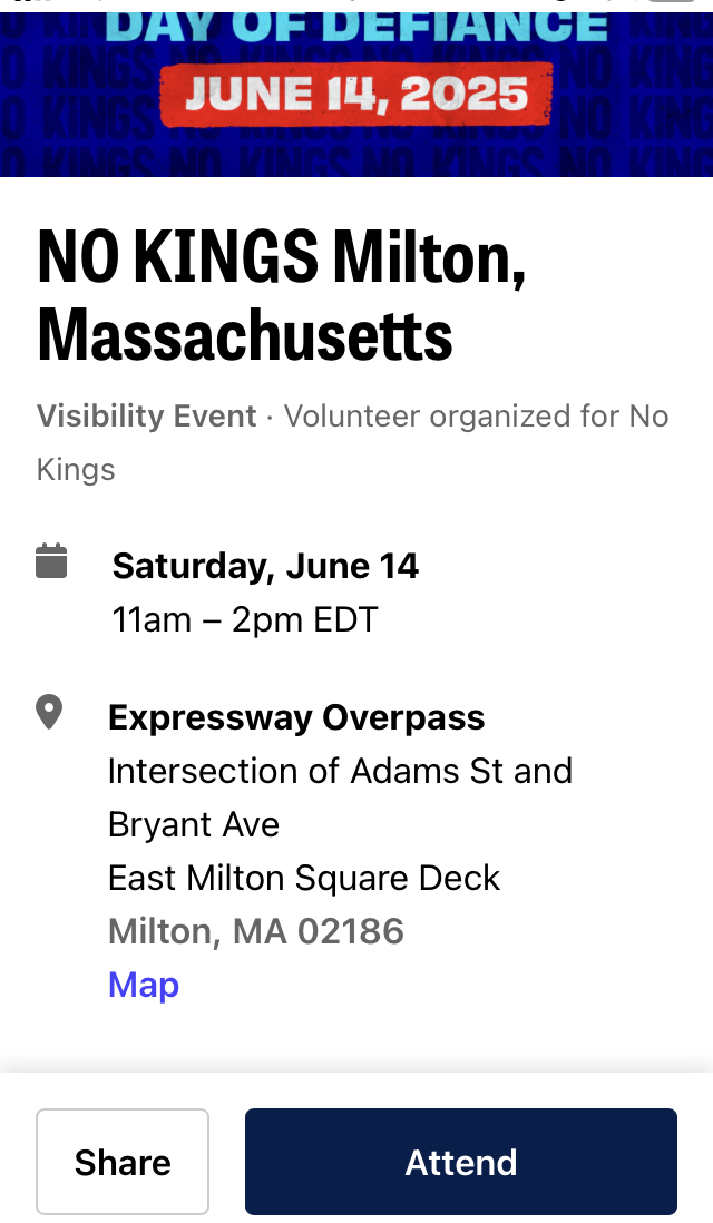 For more: No Kings rally in Randolph; and the April 5 Hands Off rally in Boston.