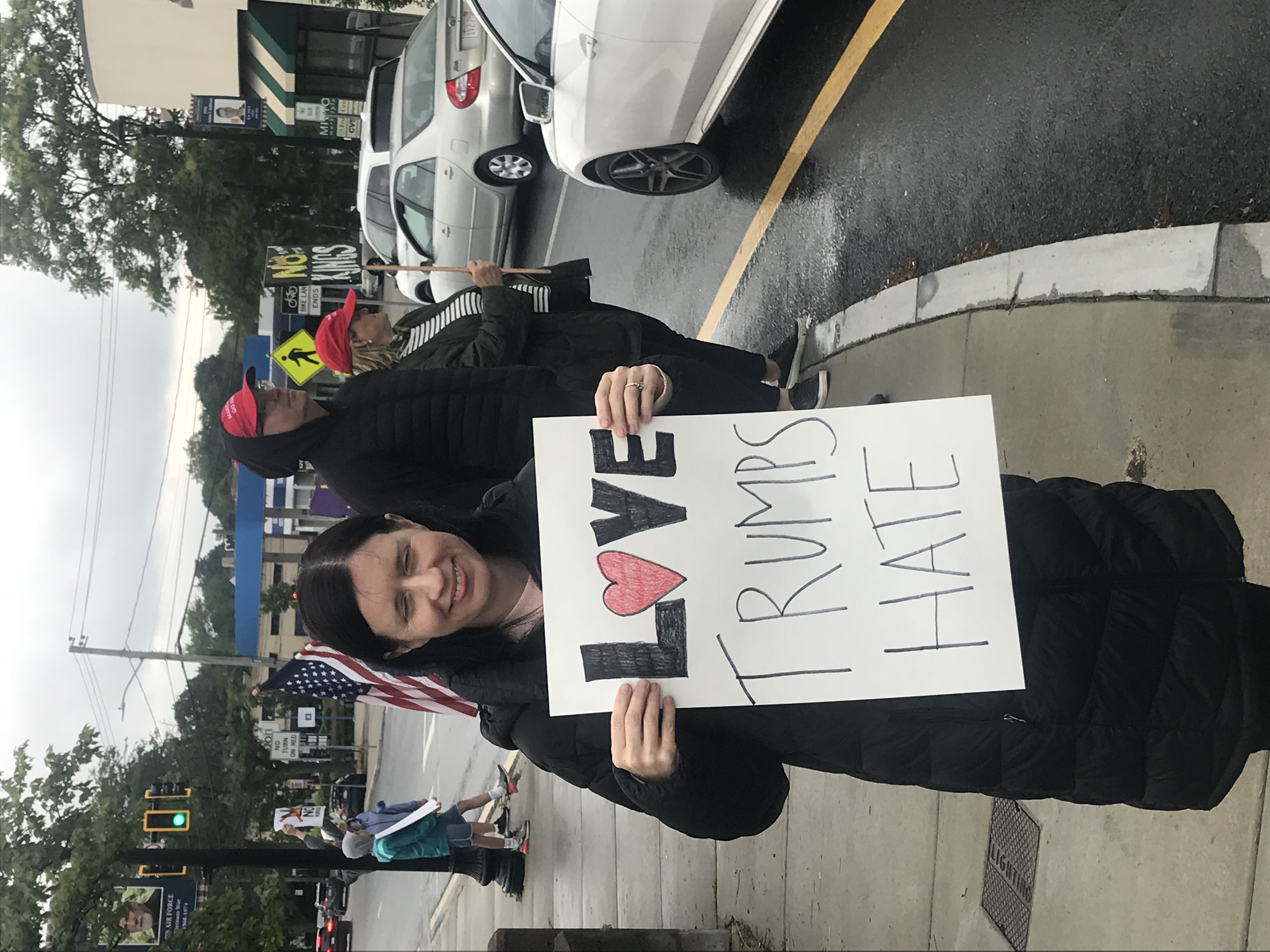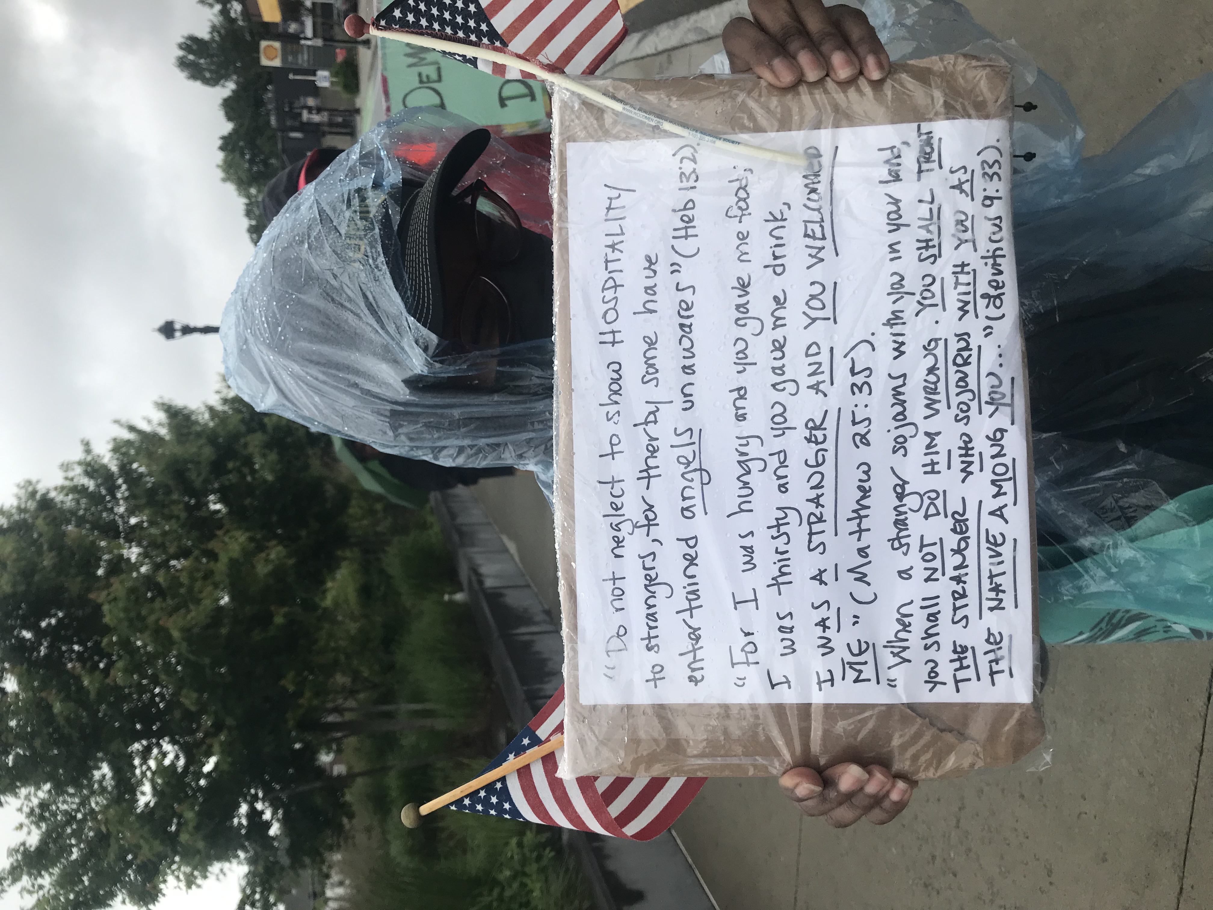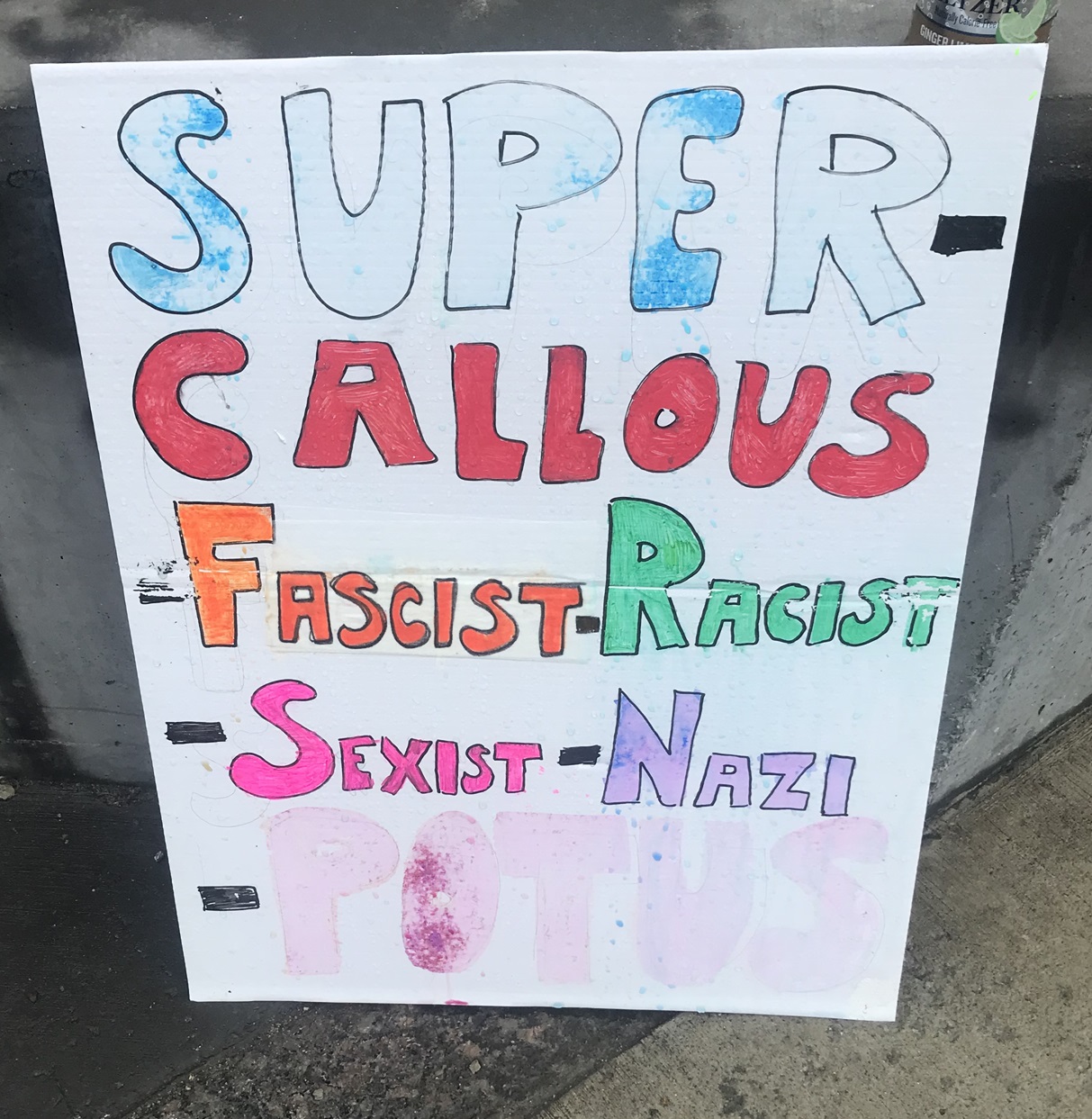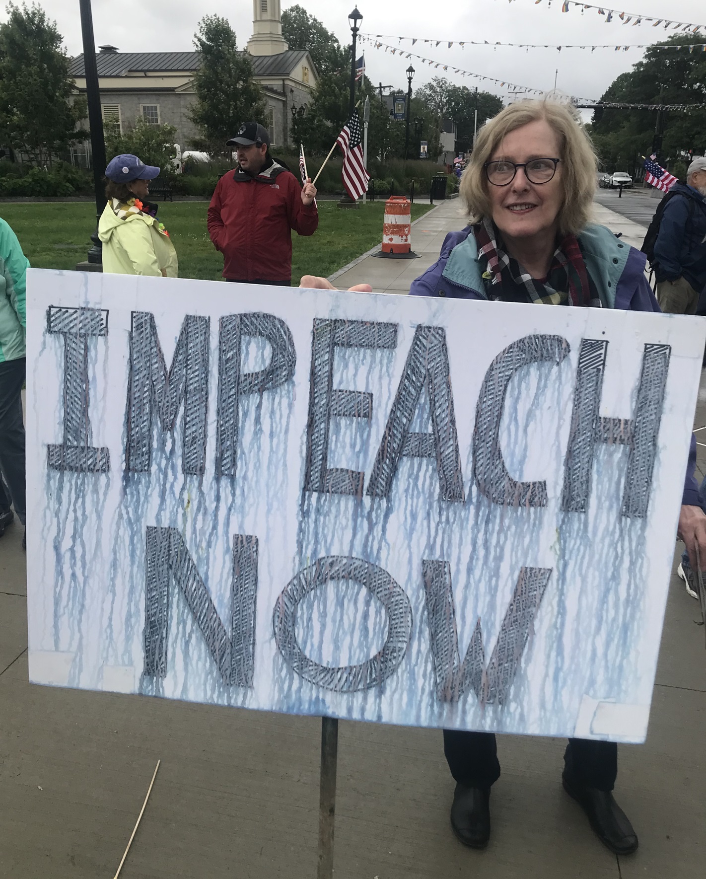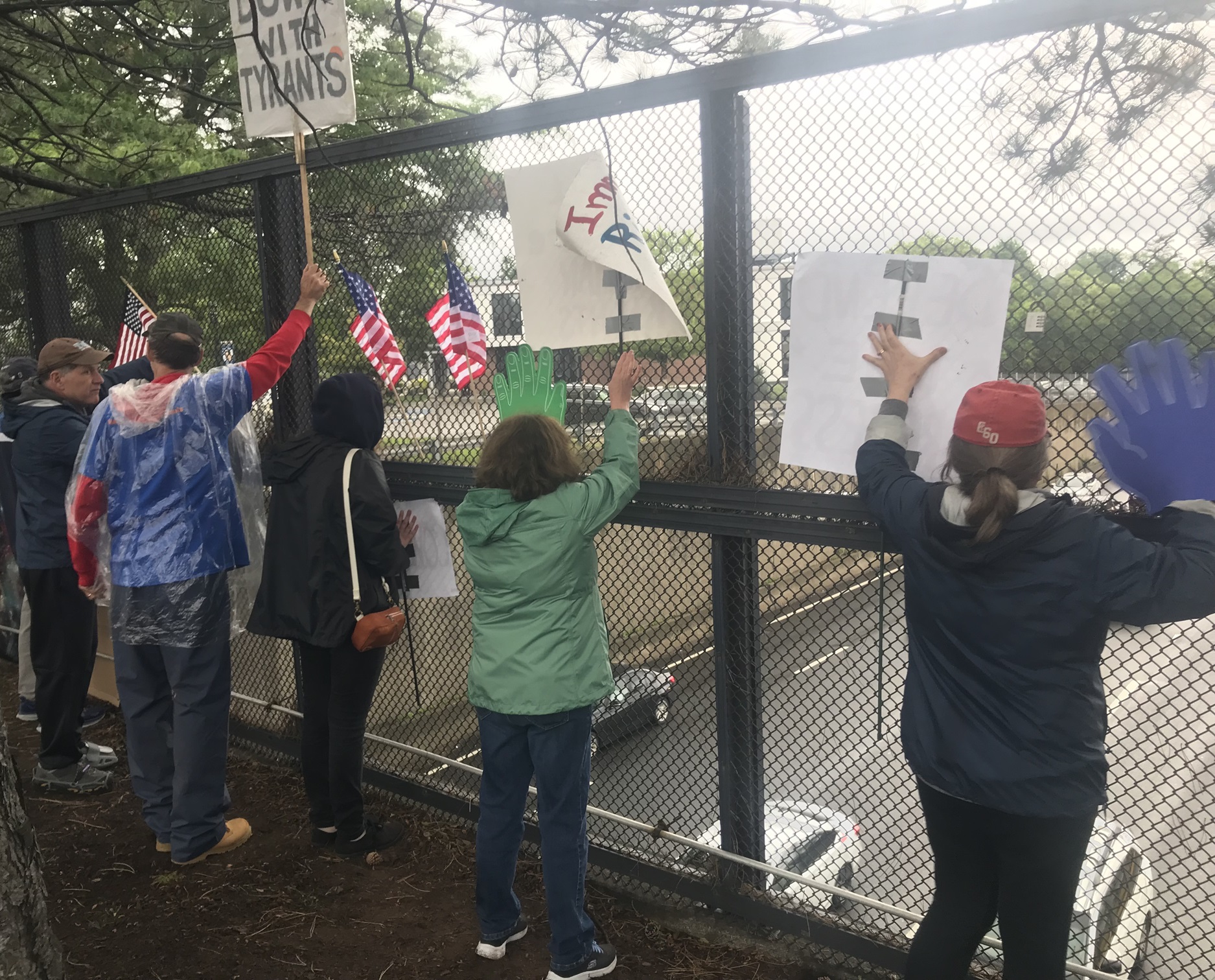 The two signs on the right below are my signs made with oil-based markers. I paid an extra dollar at the CVS to get oil-based markers, because rain was predicted, and indeed it rained all day (these photos are AFTER these signs were out in the rain all day -- after the rally at my mom's house).