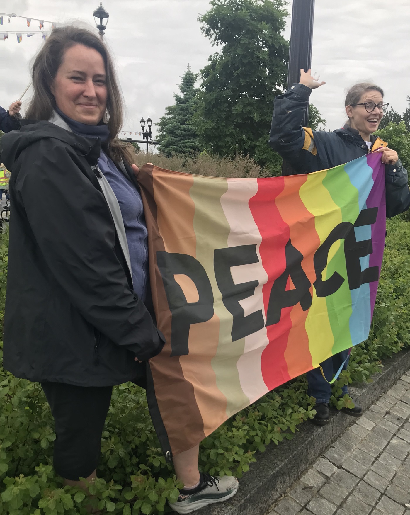 I felt Very Smart and Very Well-Prepared until I saw the signs on the left below -- they are made with water-based markers, and yes, they got affected by the rain, but with such a dramatic effect that I wished my signs had leaked too!